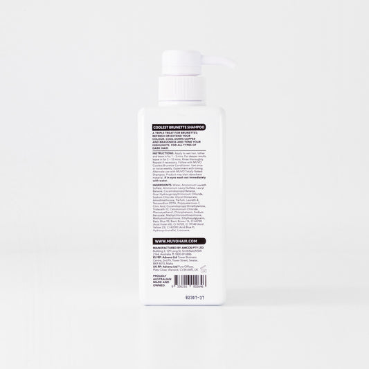 Coolest Brunette is the answer to keeping your brunette hair cool. Refresh colour in between salon visits, remove unwanted copper tones and cool brassy highlights all in one wash! Healthy, shiny, vibrant hair has never been easier to maintain with our multi-functional Coolest Brunette range.