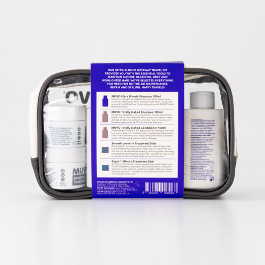 Give your colour the love it deserves with MUVO’s limited-edition Blonde Bombshell Kits and Getaway Packs. Designed to tone, brighten and revive your hair on the go, these curated sets are perfect for blondes, brunettes and every shade in between.