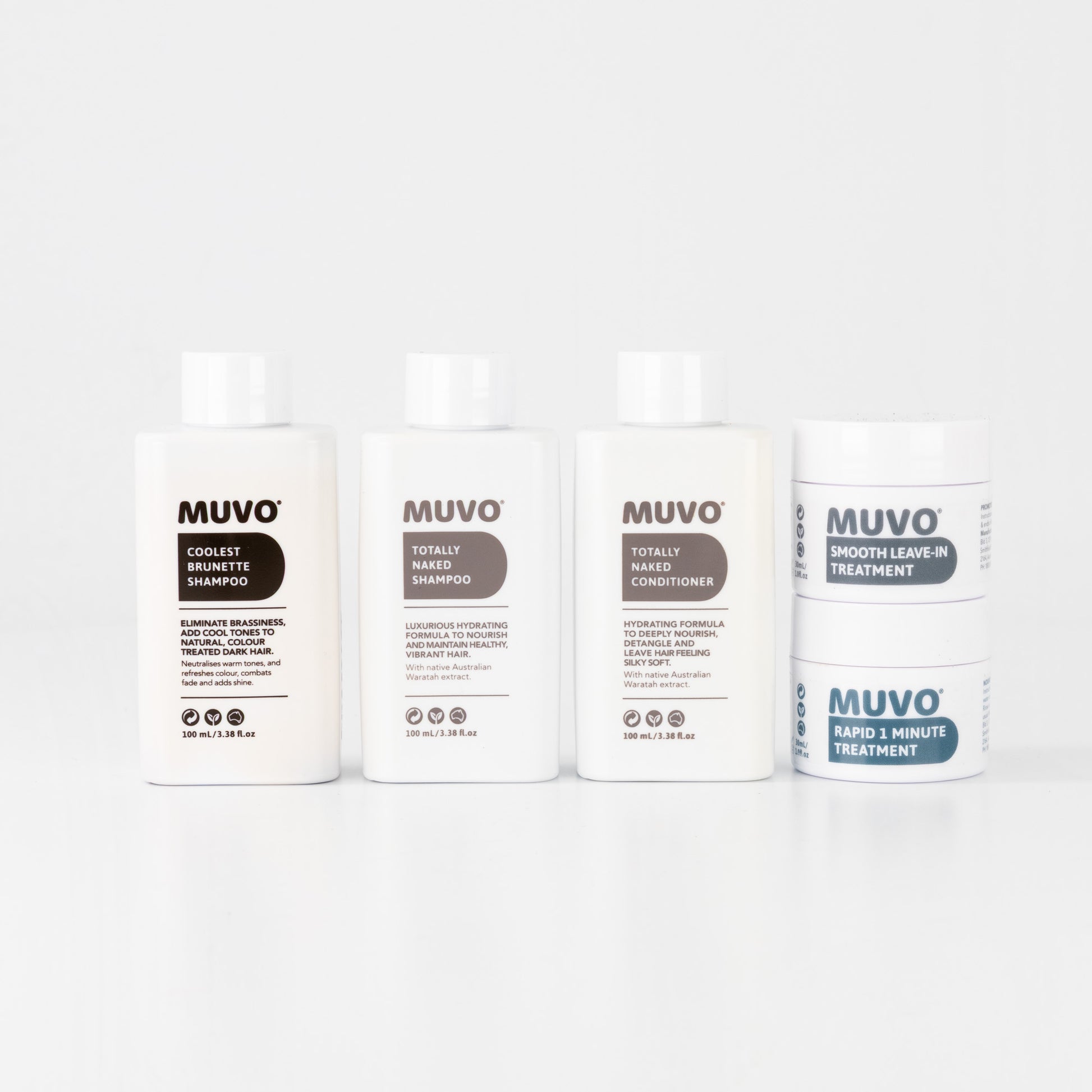 MUVO Totally Naked Shampoo 100ml is a luxurious hydrating formula to cleanse, nourish and maintain healthy, vibrant hair. Australia’s Waratah extract helps to repair damage and promote smooth, shiny hair. Use on it’s own in between washes with MUVO Coolest Brunette Shampoo.